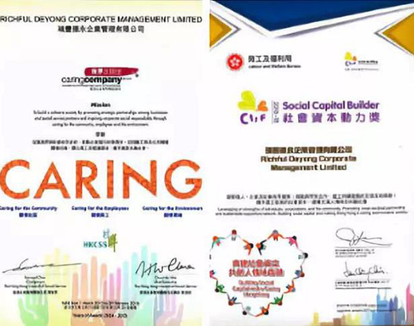 ? 榮獲香港社會(huì)服務(wù)聯(lián)會(huì)頒發(fā)的香港商界展關(guān)懷榮譽(yù)獎(jiǎng)