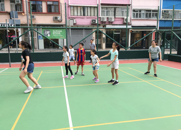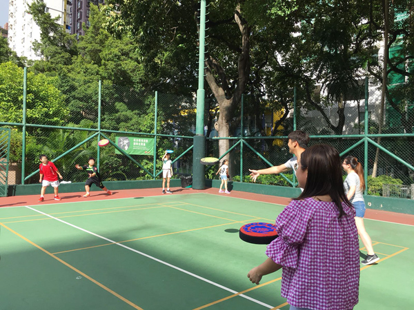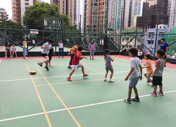 瑞豐德永義工團(tuán)與小朋友互相傳接閃避盤(pán)先作熱身。