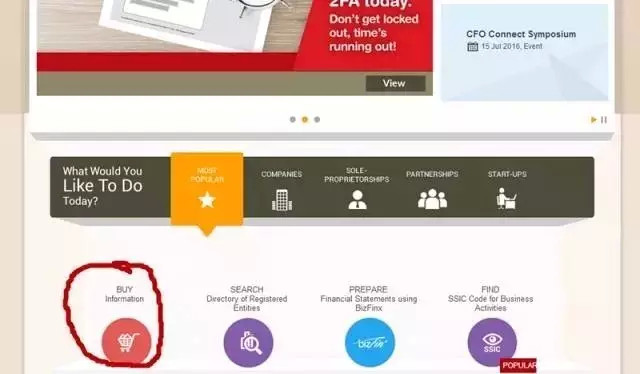 第一步:登陸注冊局官網(wǎng)(www.acra.gov.sg) 點擊紅圈圈內(nèi)Buy information