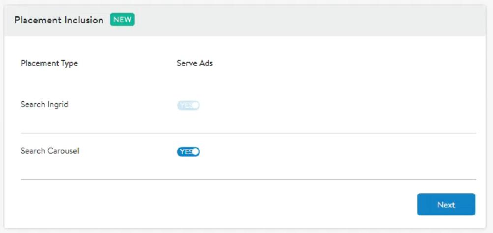 第 5 步(僅適用于手動廣告):如圖5所示,利用選擇展示位置包含的新功能,選擇稱為Search Ingrid和Search Carousel的兩種展示位置類型。Search Ingrid默認(rèn)開啟,無法關(guān)閉。Search Carousel是可選的,但強(qiáng)烈建議擴(kuò)大覆蓋面,并且僅適用于基于關(guān)鍵字的廣告系列。此選項(xiàng)在搜索頁面上的搜索輪播廣告中展示產(chǎn)品。