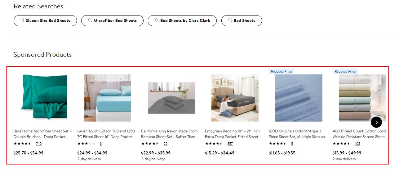 如圖10所示,贊助商廣告可以出現(xiàn)在 Walmart.com 的幾個不同位置。它們通常出現(xiàn)在搜索結(jié)果頁面中,產(chǎn)品購買框下方,或者出現(xiàn)在搜索頁面、產(chǎn)品頁面上的產(chǎn)品輪播中。