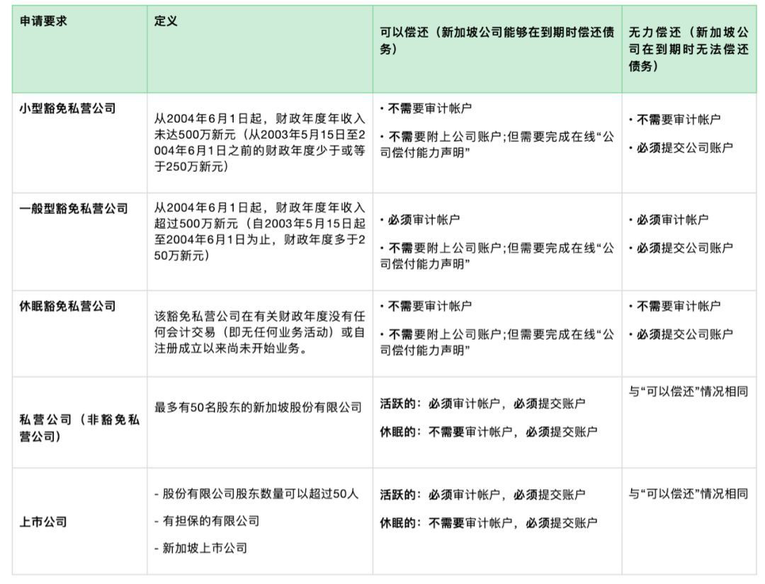自2015年7月1日或之后開始財(cái)政年度的新加坡公司財(cái)務(wù)報(bào)表豁免審計(jì)。對(duì)于屬于集團(tuán)性質(zhì)的新加坡公司,在以下條件下有資格獲得審計(jì)豁免: