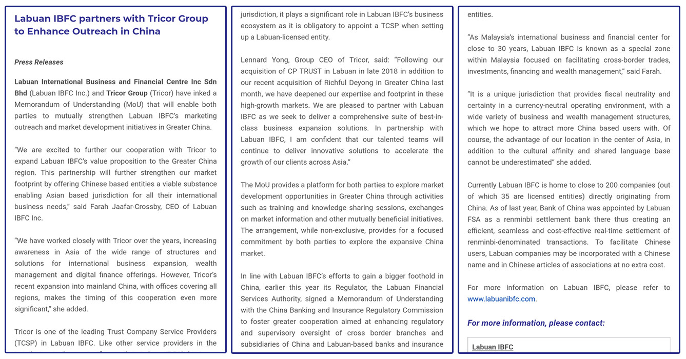 納閩國際商業(yè)金融中心(Labuan IBFC)中國授權代理機構