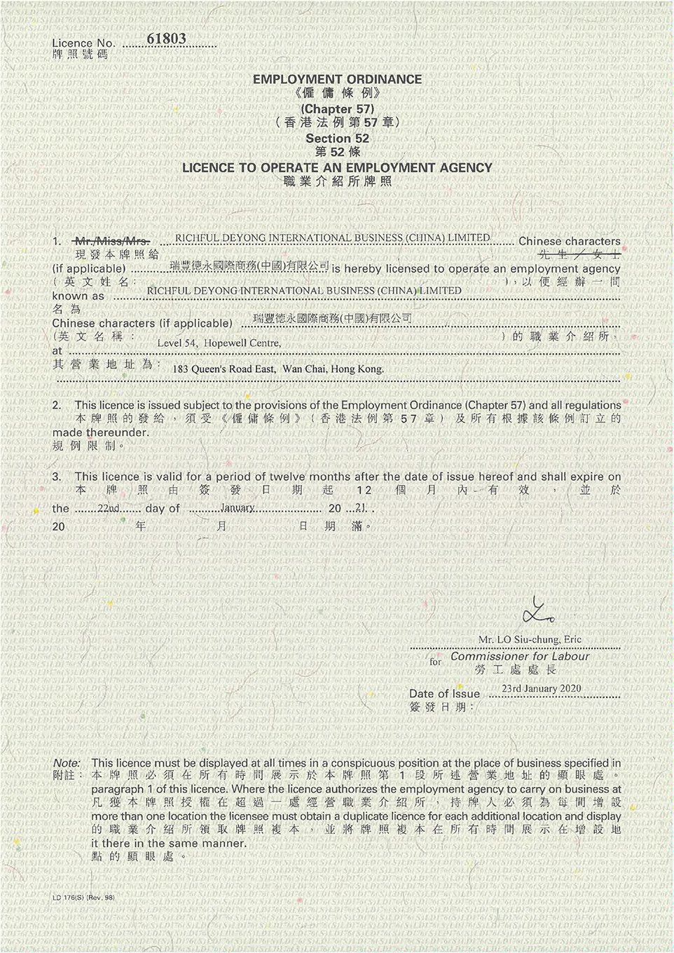香港職業(yè)介紹所牌照