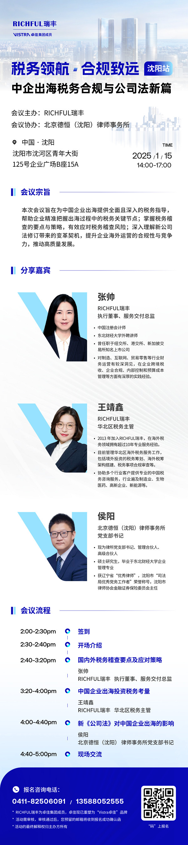 活動邀請 | 中企出海稅務(wù)合規(guī)與公司法新篇(沈陽站)…