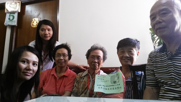 這些長(zhǎng)者有些是獨(dú)居的,有些是行動(dòng)不便的,還有些則是親屬不常在身邊的。我們陪長(zhǎng)者聊天,在聊天的過(guò)程中,了解他們的日常生活起居和飲食習(xí)慣等。希望通過(guò)聊天了解到是否有什么地方需要特別幫助的,再反映給長(zhǎng)者鄰舍中心的義工以便他們跟進(jìn)。長(zhǎng)者們知道我們要上去探訪他們,都非常高興,一早就站在門外等待我們的到來(lái)。
