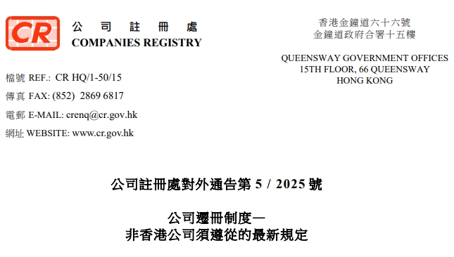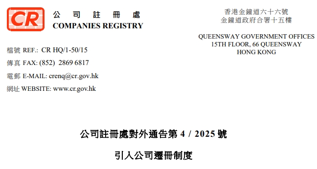 《公司條例》(第622章)已作出修訂,引入新的公司遷冊制度,讓非香港法團遷冊來港。在《2025年公司(修訂)(第2號)條…
