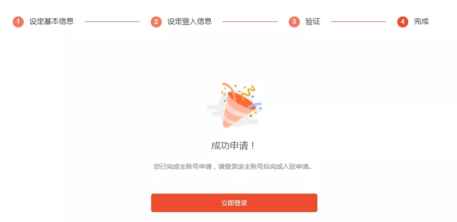 1、官網(wǎng)點(diǎn)擊立即入駐-注冊(cè)主賬號(hào)-填寫(xiě)完整的入駐材料-審核通過(guò)-開(kāi)通賬號(hào)
