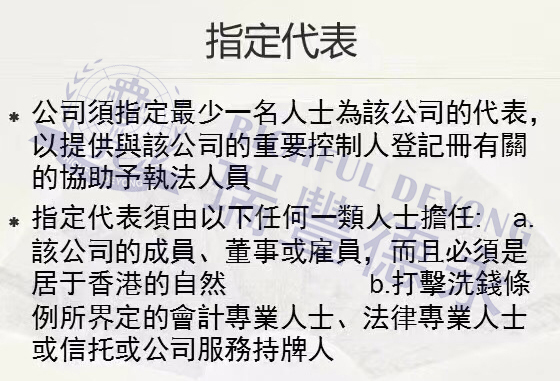 這里需要重點關(guān)注一下“公司指定代表”的幾個重要條件,現(xiàn)在市場很多小的香港公司注冊中介和代理可能無法達到上述要求,因此在辦理“備存重要控制人登記冊”的時候,一定要找符合條件和資質(zhì)的機構(gòu)來做,否則可能出現(xiàn)錢花了事情未辦妥的情況。