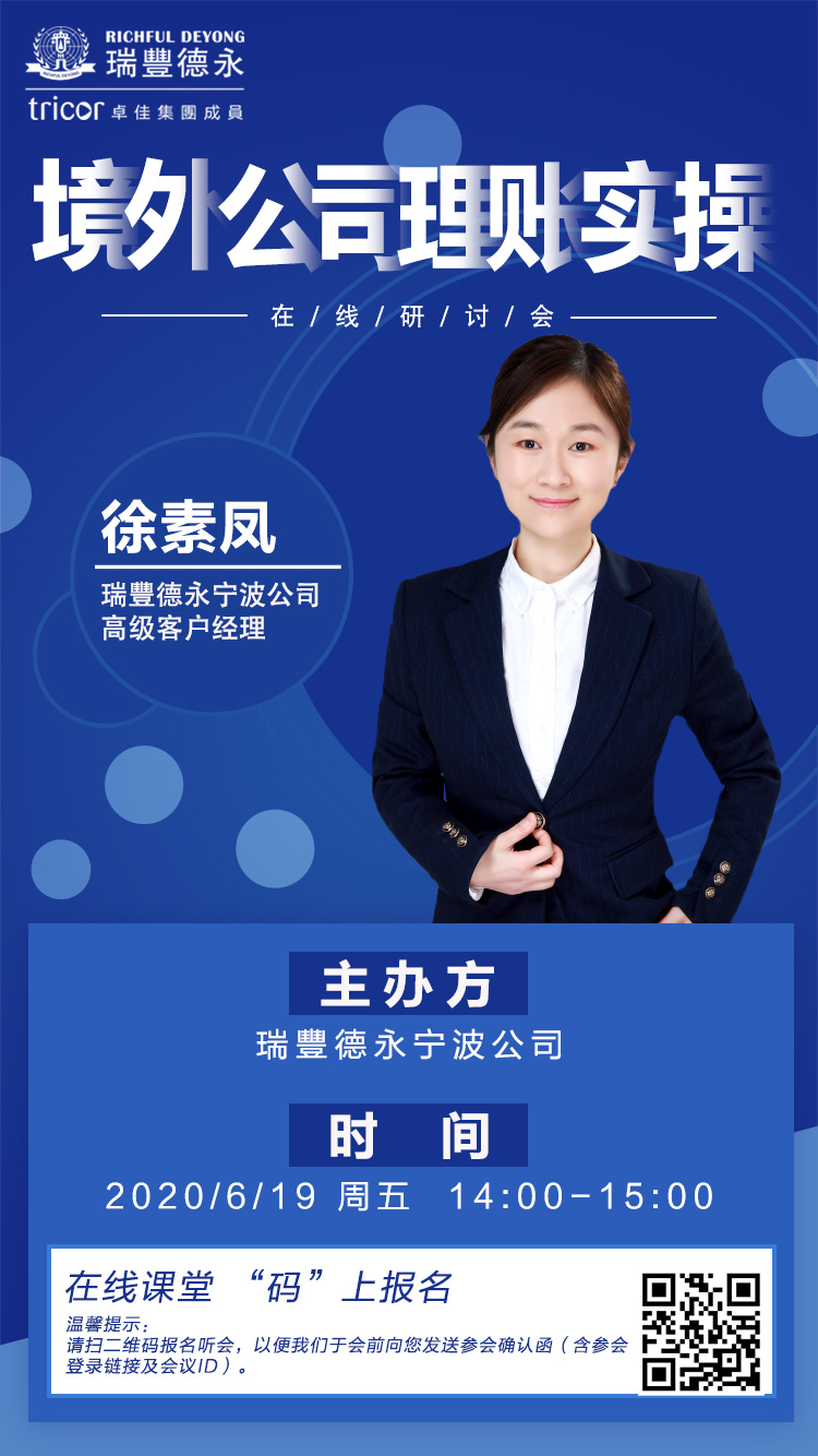 為了企業(yè)增強(qiáng)海外投資規(guī)劃管理能力和風(fēng)險管控意識,助力外向型企業(yè)“走出去”行穩(wěn)致遠(yuǎn),瑞豐德永6月19日將舉辦《境外公司理賬實(shí)操》在線公開課。
