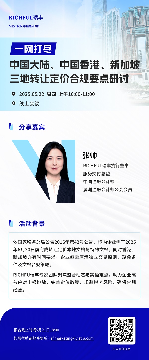 5.22直播預(yù)告 | 中國大陸、中國香港、新加坡三地轉(zhuǎn)讓定價(jià)合規(guī)要點(diǎn)研討…